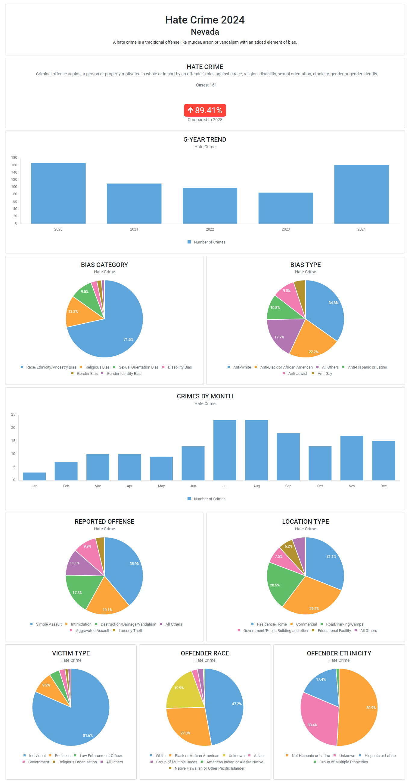 The data and charts in this theme are now based on detailed incident reports and are available starting in 2021. Data for those agencies who submitted detailed incident reports prior to 2021, as well as historical less detailed data, can be seen in the reports on the Public Reporting site. Themes do not display every offense type that is collected. Examples of items not included in a theme are Human Trafficking offenses and DUI arrests. The complete list of offenses and counts can also be found on the Public Reporting site.